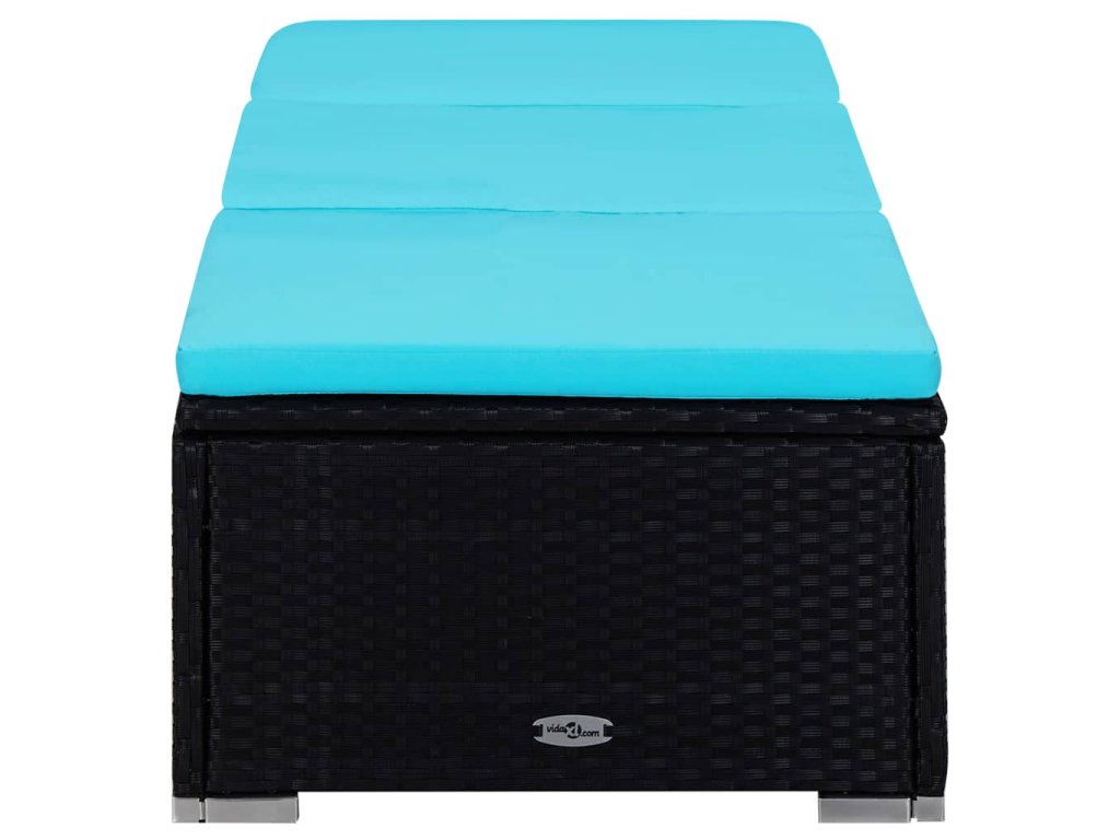 Multidom Záhradné ležadlo s vankúšom a čajovým stolíkom modré polyratan
