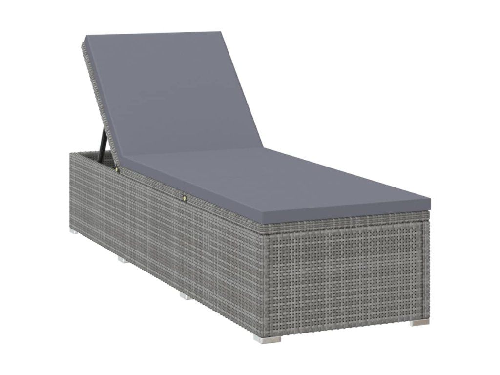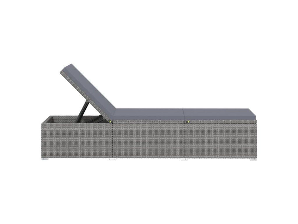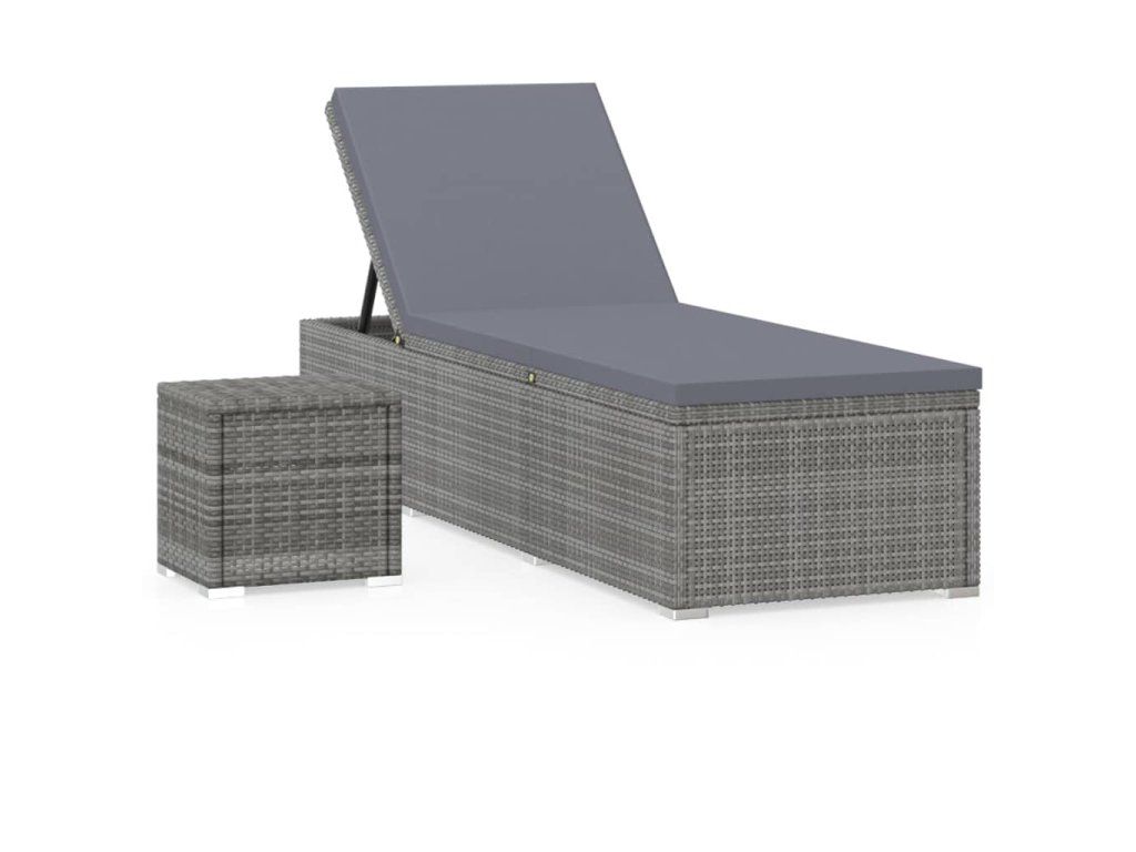 Multidom Záhradné ležadlo s vankúšom a čajovým stolíkom sivé polyratanové