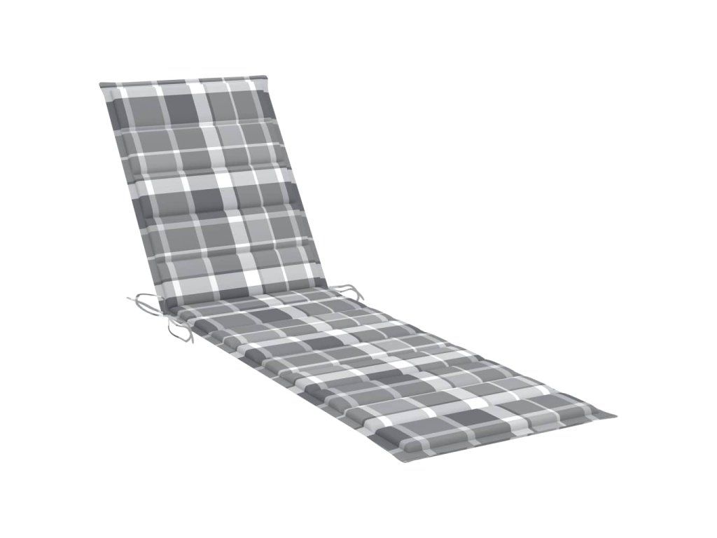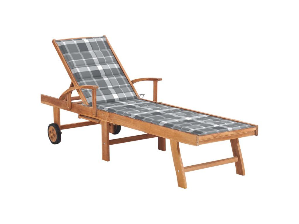 Multidom Záhradné ležadlo so sivou kockovanou podložkou tíkový masív
