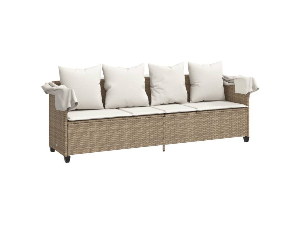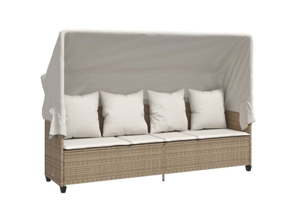Multidom Záhradné ležadlo so strieškou a podložkami, béžové , polyratan