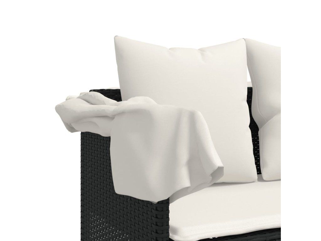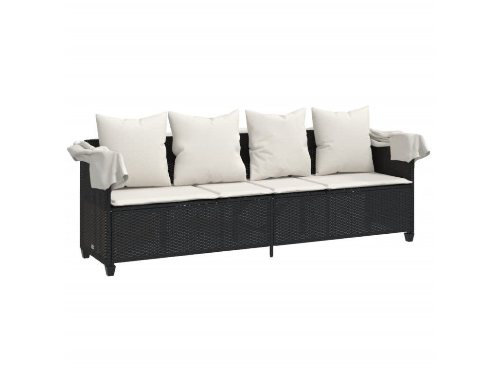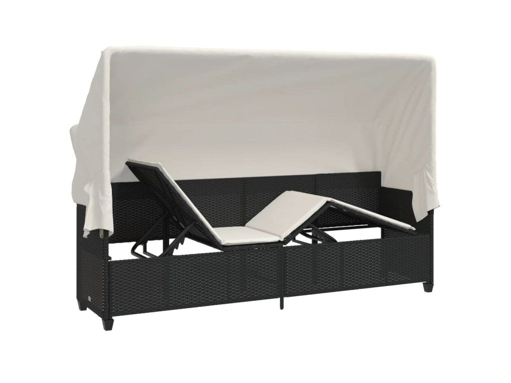 Multidom Záhradné ležadlo so strieškou a podložkami, čierne, polyratan