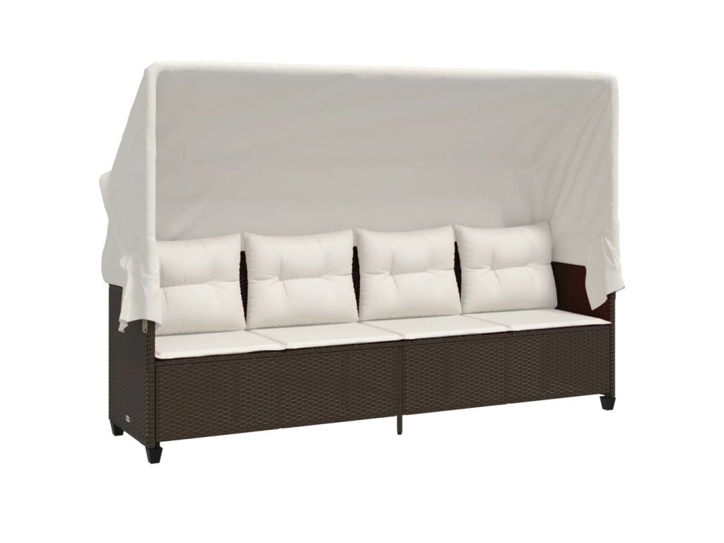 Multidom Záhradné ležadlo so strieškou a podložkami, hnedé, polyratan
