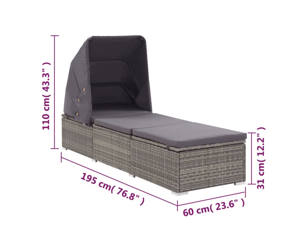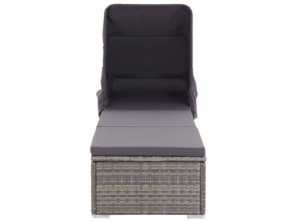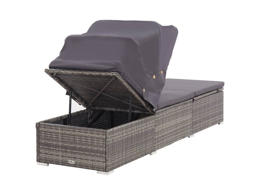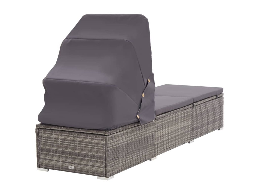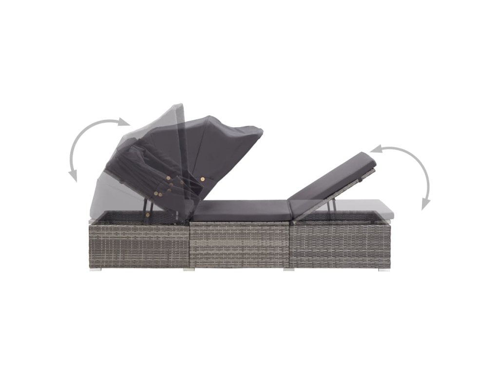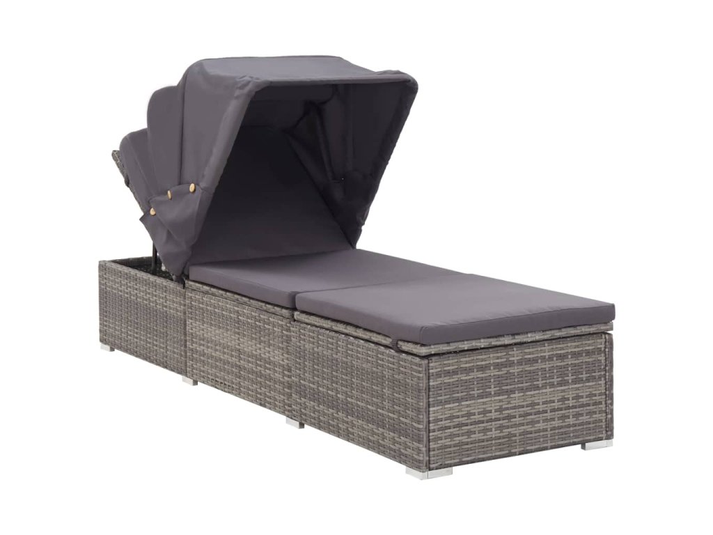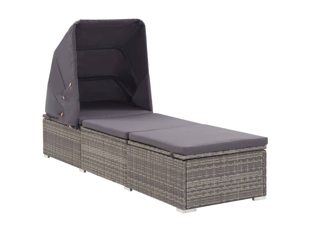 Multidom Záhradné ležadlo so strieškou a podložkou sivé polyratanové