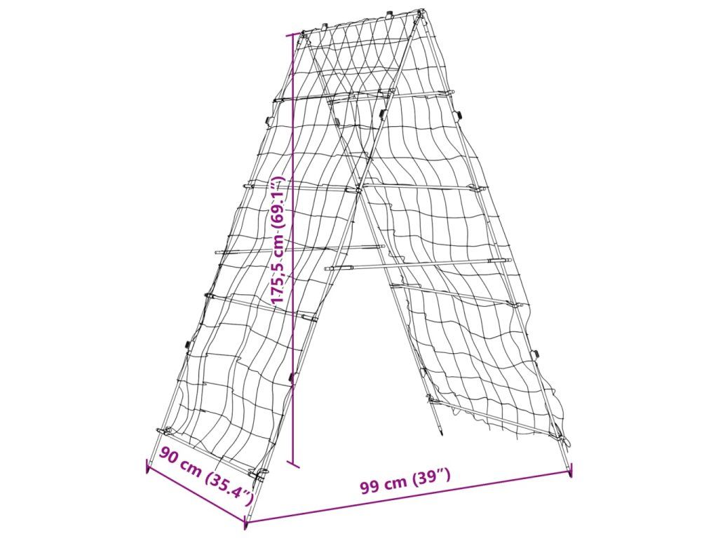 - Odolná a stabilná: Záhradná mreža je vyrobená z ocele s PE povlakom, takže je trvácna, odolná voči korózii a má dlhú životnosť. Okrem toho je vybavená rámom v tvare písmena A, ktorý zabezpečuje maximálnu stabilitu pre vaše popínavé rastliny.