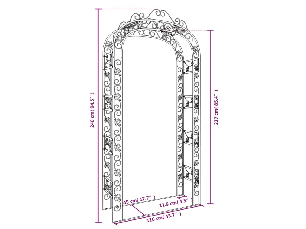 Multidom Záhradné oblúky čierne 116x45x240 cm oceľ