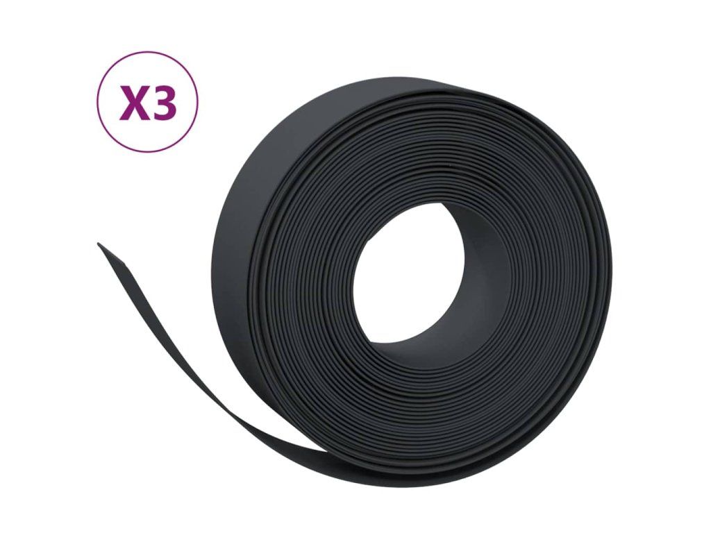 Multidom Záhradné obruby 3 ks čierne 10 m 15 cm polyetylén