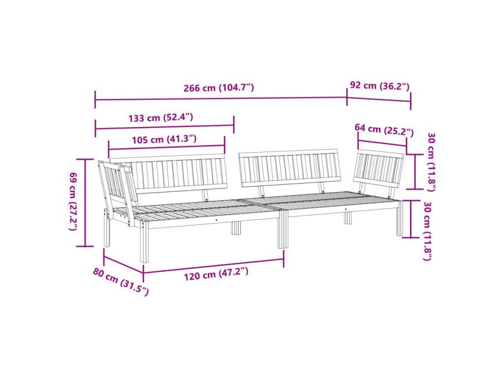 - Masívne akáciové drevo: Stredová pohovka je vyrobená z masívneho akáciového dreva. Akáciový masív je krásny prírodný materiál. Akáciové drevo je drevo tropického listnatého stromu, ktoré je husté, pevné a trvácne. Vďaka olejovej povrchovej úprave je pohovka vhodná na vonkajšie použitie.