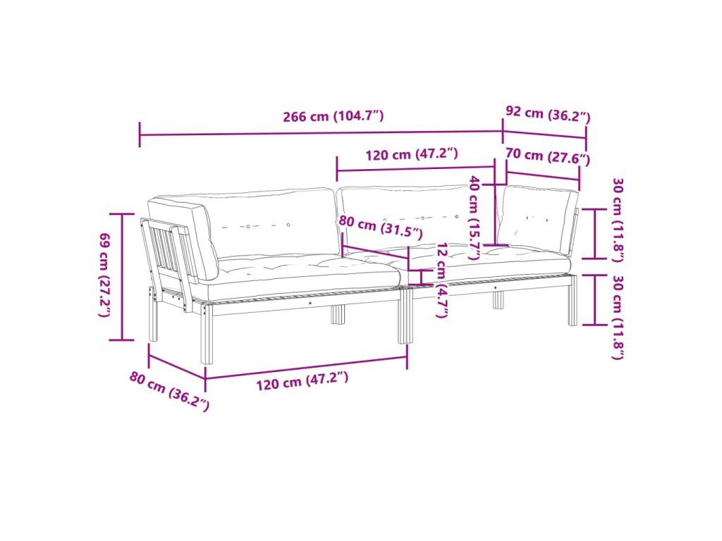- Rozmery bočnej podložky: 70 x 40 x 12 cm (D x Š x H)