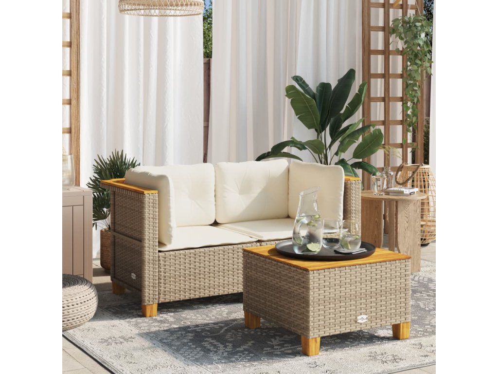 Multidom Záhradné pohovky rohová s vankúšmi 2 ks béžová polyratanová