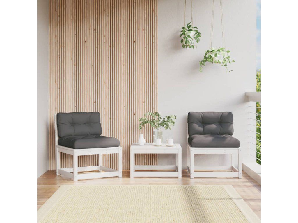 Multidom Záhradné pohovky s podložkami 2 ks, biele, borovicový masív