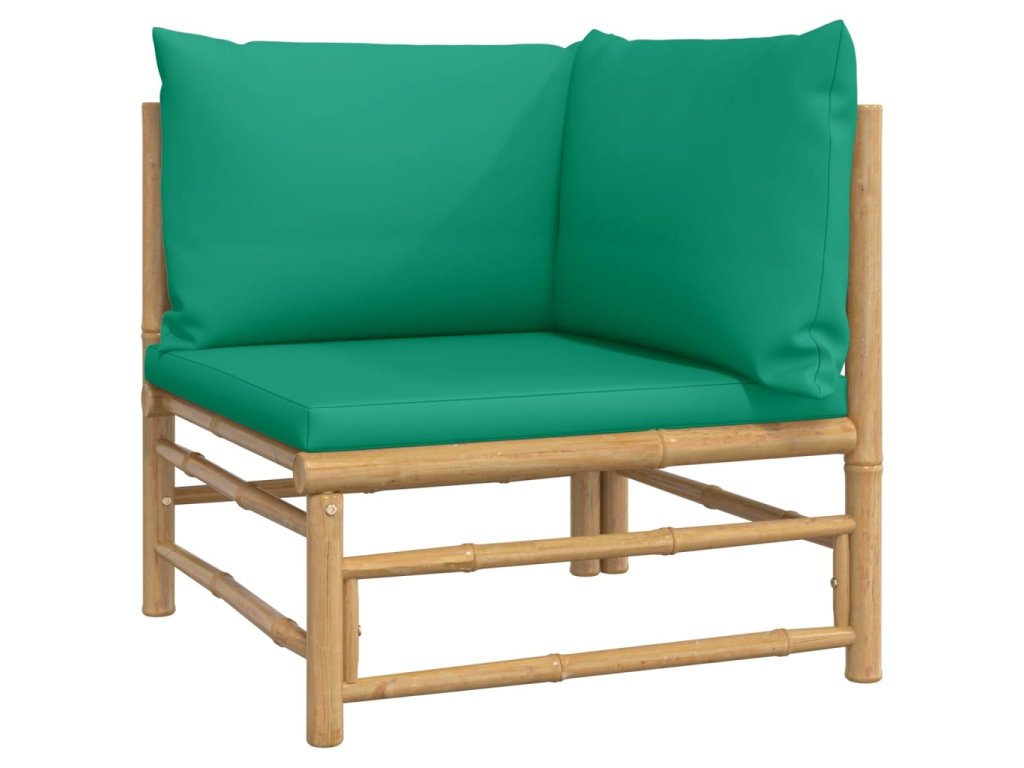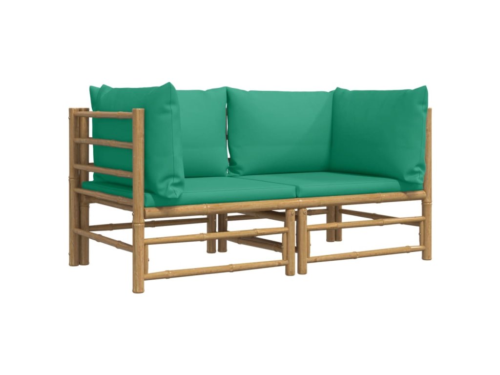 Multidom Záhradné rohové pohovky so zelenými vankúšmi 2 ks bambus