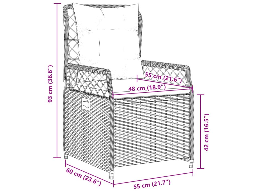 - Robustný a stabilný rám: Oceľový rám s práškovým nástrekom zaisťuje, že záhradný nábytok je pevný a stabilný pre každodenné vonkajšie použitie.