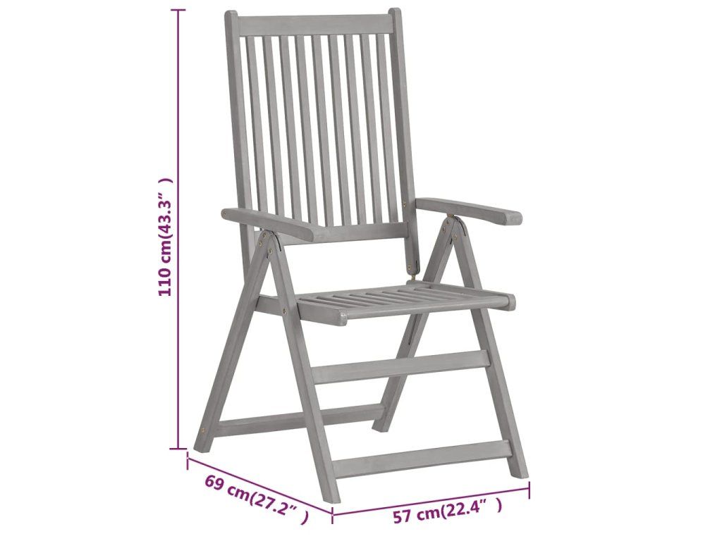 Naša sada stoličiek je vyrobená z masívneho akáciového dreva a má ošúchaný sivý povrch. Drevo je odolné voči UV žiarenie a poveternostným vplyvom, takže zabezpečí dlhé roky používanie. Operadlo stoličky sa dá nastaviť do 5 pozícií, takže si vždy nájdete tú najpohodlnejšiu polohu. Ľahký dizajn uľahčuje presúvanie stoličiek po dome. Okrem toho sa dá stolička sklopiť, aby sa ušetril priestor, keď sa nepoužíva.