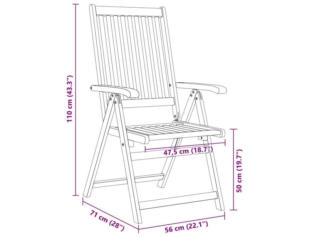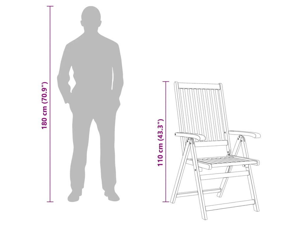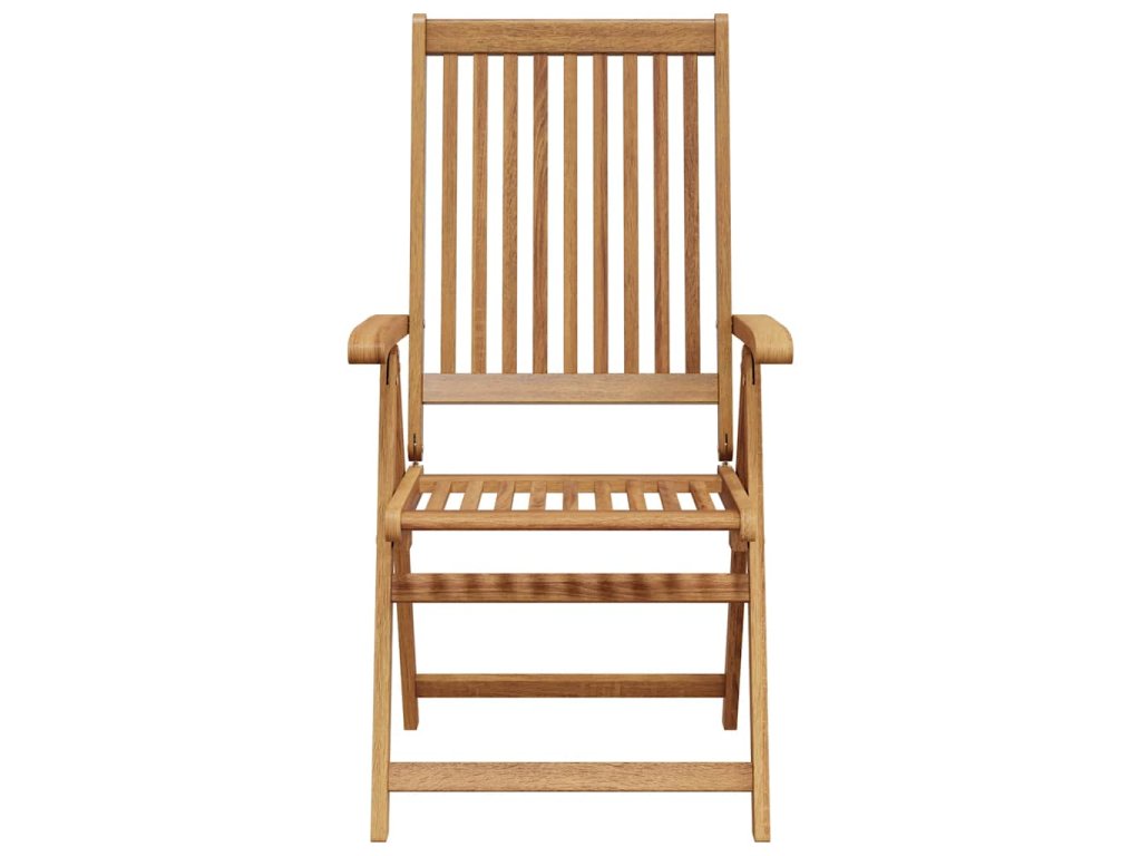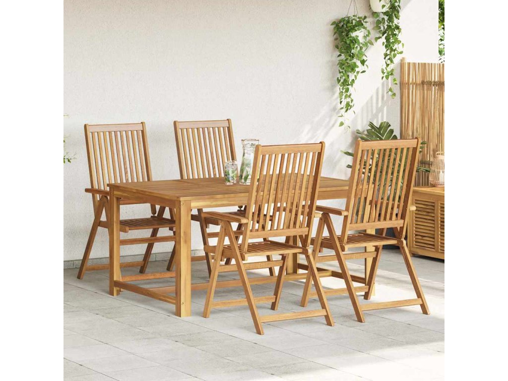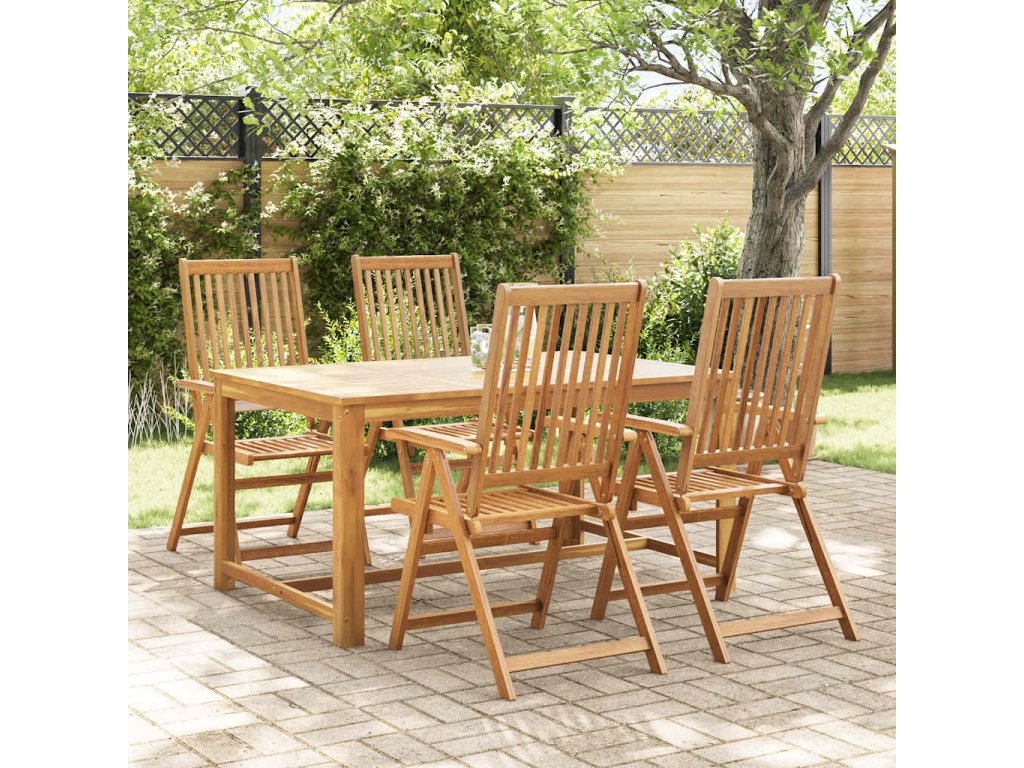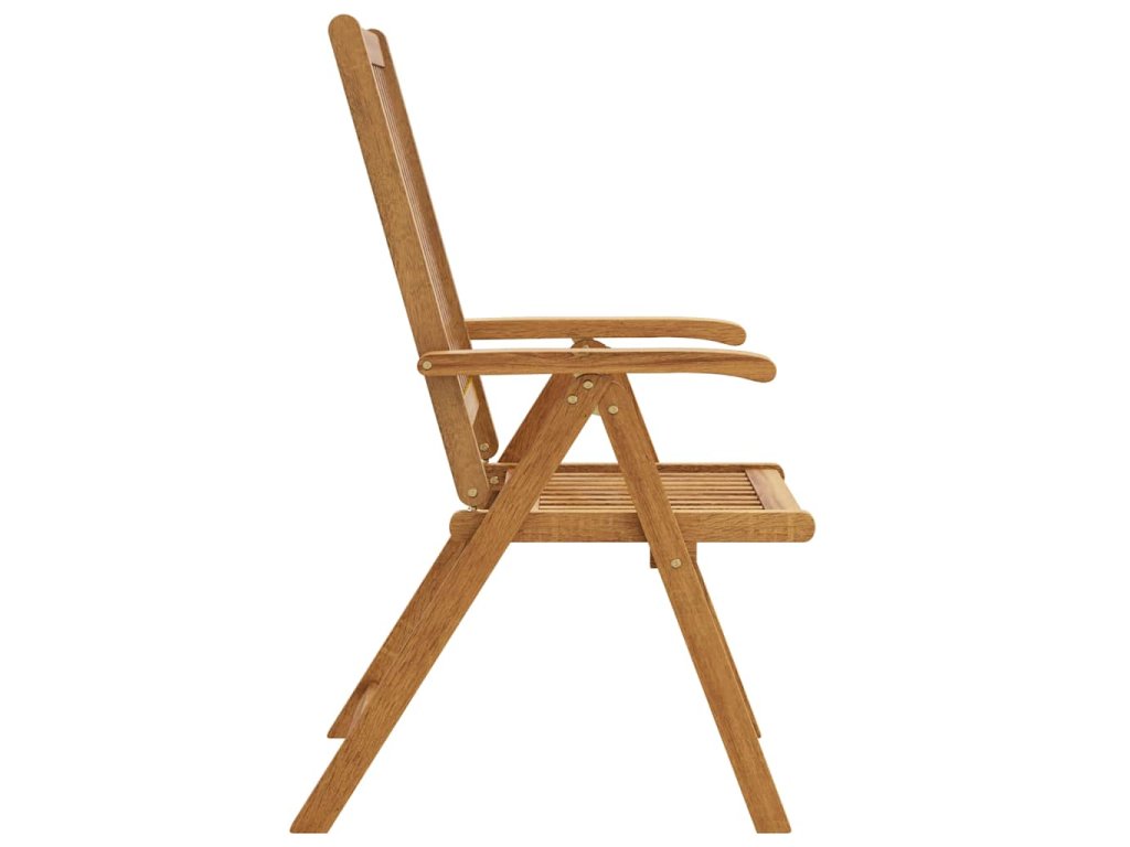 Skladacia stolička je vyrobená z masívneho akáciového dreva, tropického tvrdého dreva, vďaka čomu je stabilná a odolná. Olejom upravený povrch sa ľahko čistí vlhkou handričkou. Jedálenskú stoličku je možné nastaviť do 5 polôh, čo vám poskytne optimálne pohodlie počas sedenia. Môže sa tiež sklopiť, aby sa ušetrilo miesto, keď sa nepoužíva.