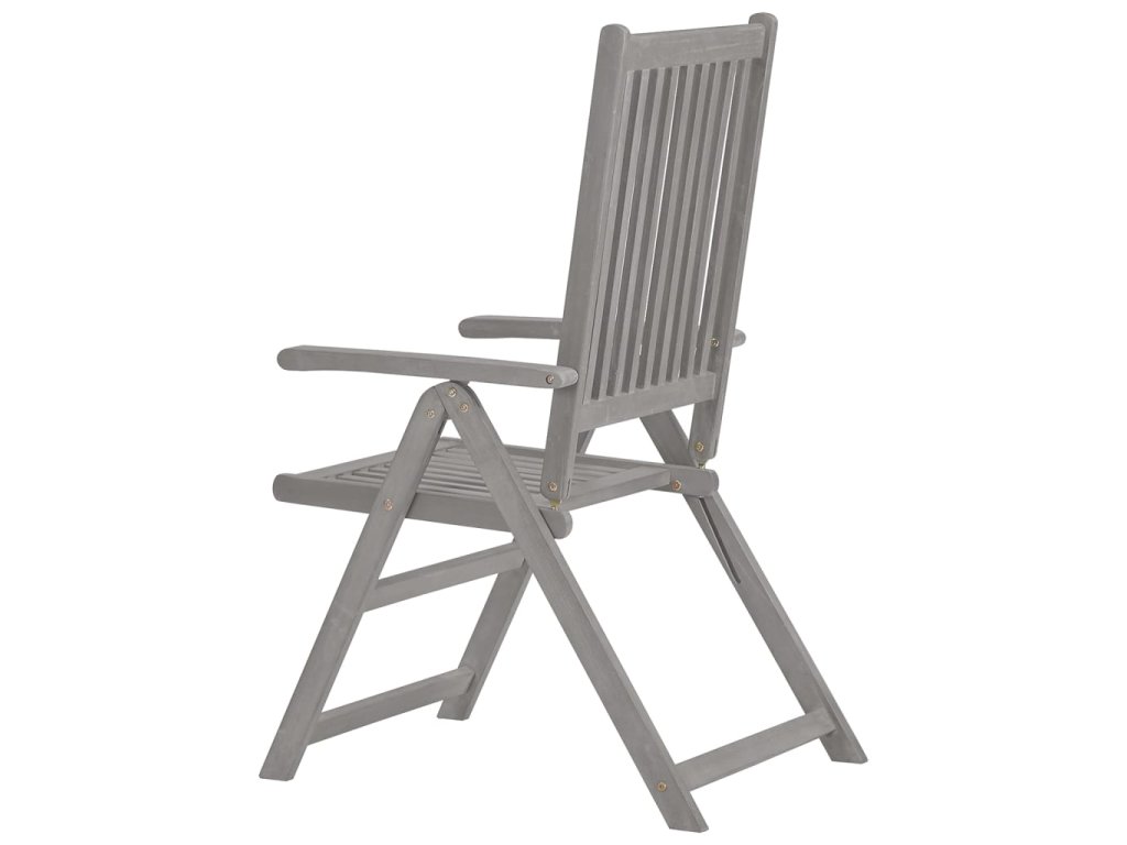 Stoličky sú vyrobené z masívneho akáciového dreva so sivou povrchovou úpravou. Je to tvrdé drevo s bohatou štruktúrou. Tieto nádherne navrhnuté záhradné stoličky sú stabilné, odolné a pútavé. Operadlo sa dá nastaviť do 5 pozícií, takže si môžete kedykoľvek nastaviť tú najpohodlnejšiu polohu podľa svojich preferencií. Tieto stoličky sú ideálne na stolovanie s rodinou alebo na odpočinok na záhrade.