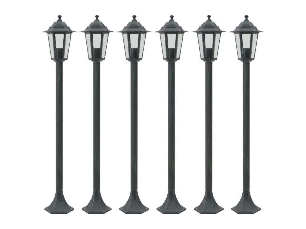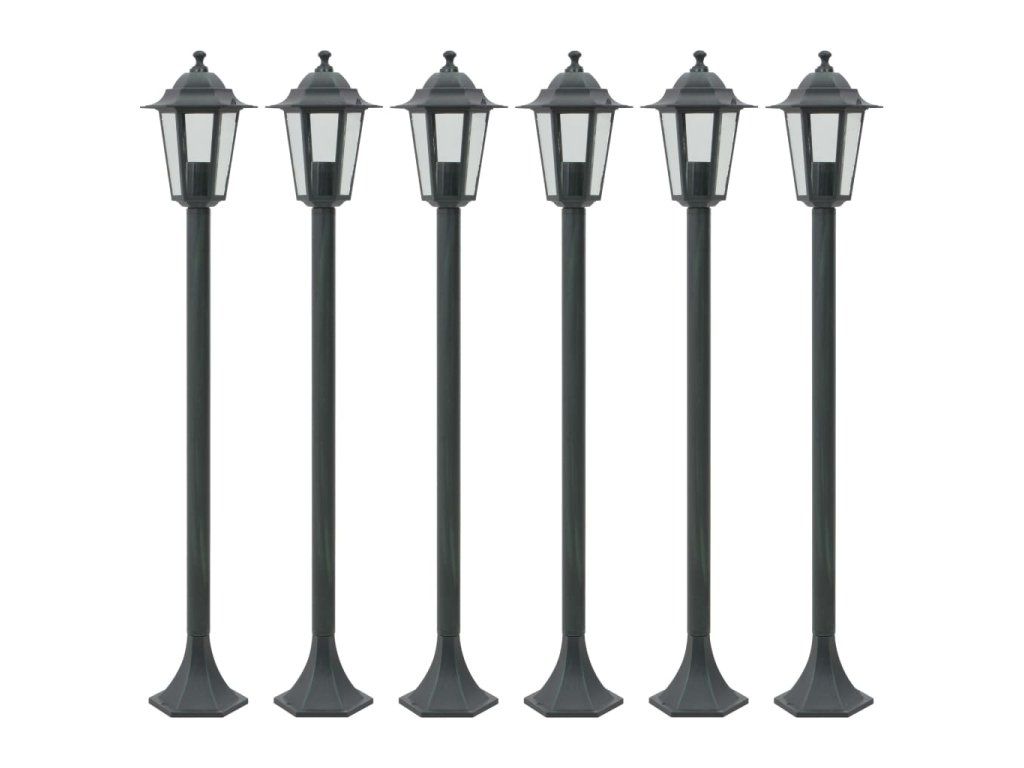 Multidom Záhradné stĺpové lampy 6 ks E27 110 cm hliníkové tmavozelené