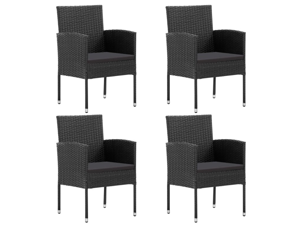 Multidom Záhradné stoličky, čierne podložky 4 ks, čierne, polyratan