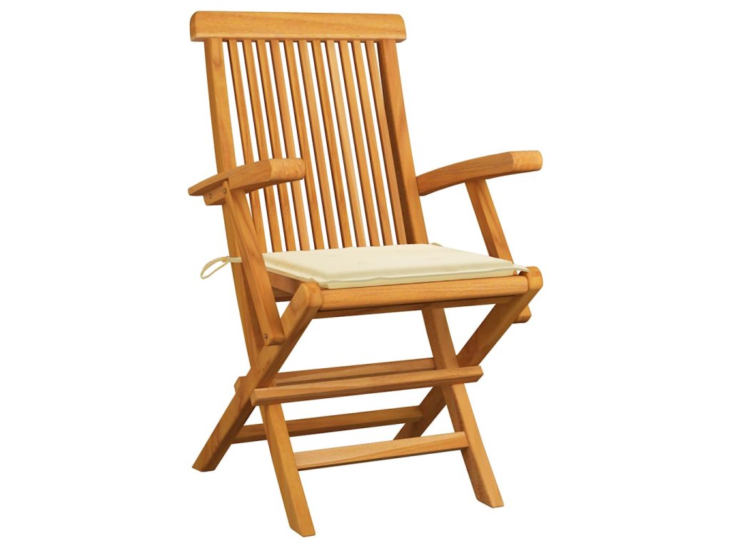 Multidom Záhradné stoličky, krémové podložky 3 ks, tíkový masív
