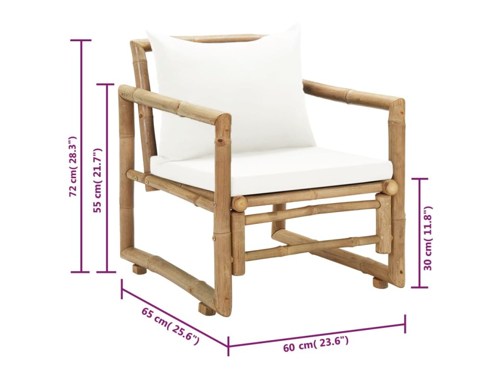 Tieto záhradné stoličky sú vyrobené z vysokokvalitného bambusu, ktorý sa vyznačuje vynikajúcou odolnosťou voči poveternostným vplyvom a dlhou životnosťou. Dajú sa jednoducho utrieť a očistiť pomocou navlhčenej handričky. Hrubé odnímateľné podložky na sedadlo a operadlo poskytujú pohodlie pri sedení.