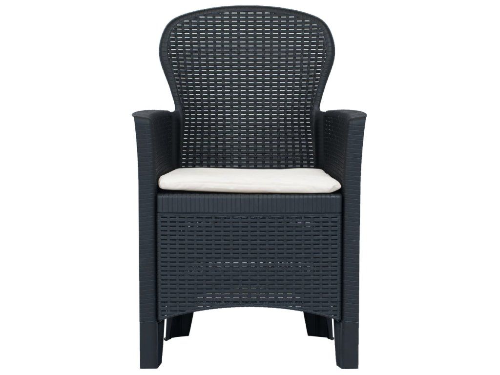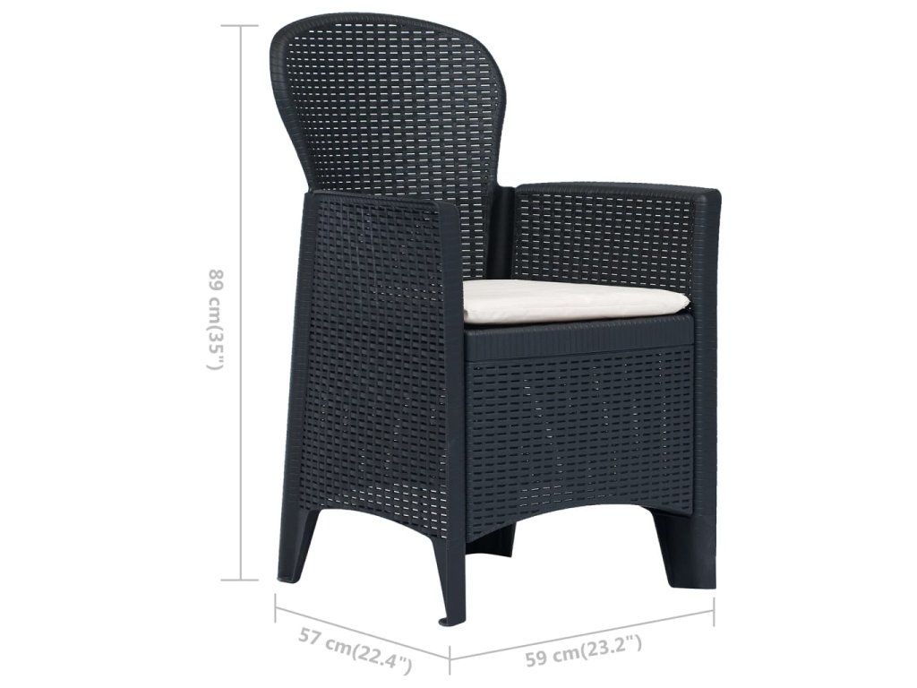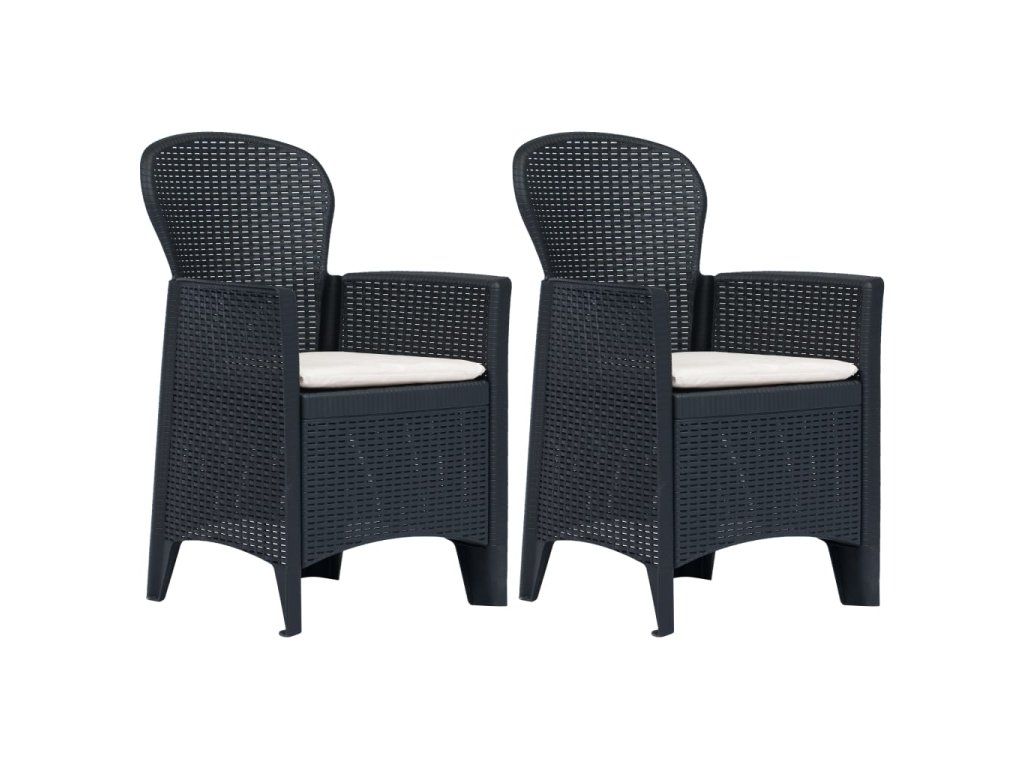 Multidom Záhradné stoličky 2 ks antracitové plastové s vankúšmi ratanový vzhľad