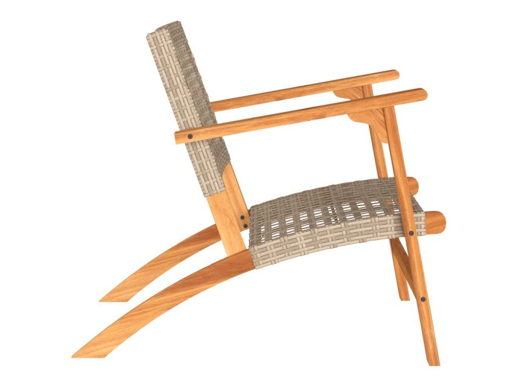 - Materiál: PE ratan, práškovaná oceľ, masívne akáciové drevo s olejovým náterom
