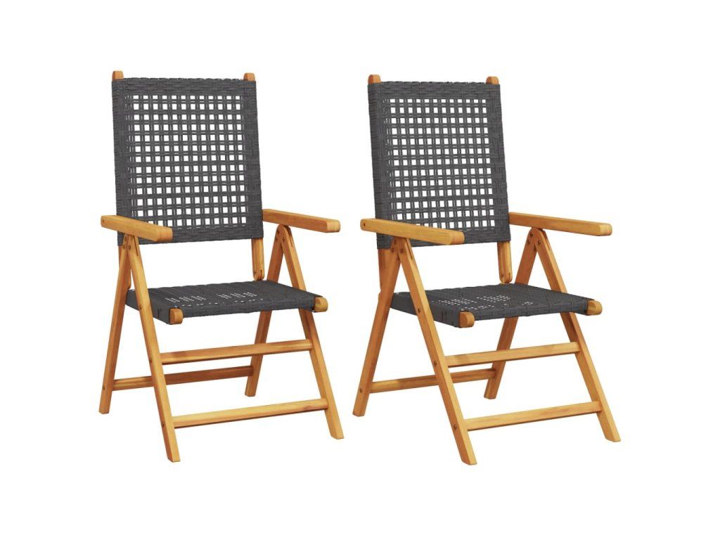 Multidom Záhradné stoličky 2 ks čierne masívne akáciové drevo polyratan