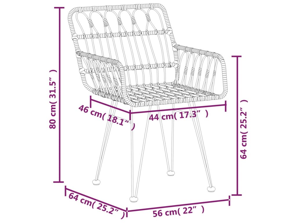 Multidom Záhradné stoličky 2 ks s opierkami rúk 56x64x80 cm PE Rattan