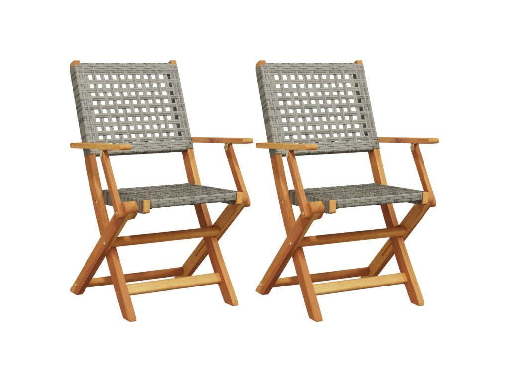 Multidom Záhradné stoličky 2 ks sivé masívne akáciové drevo a polyratan