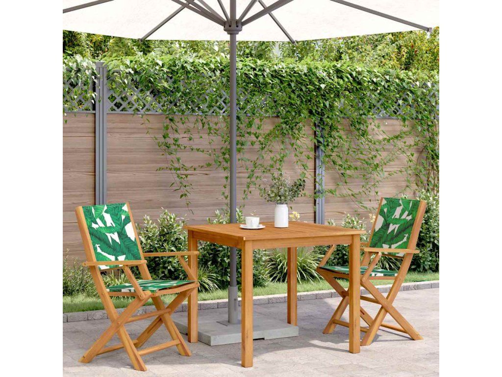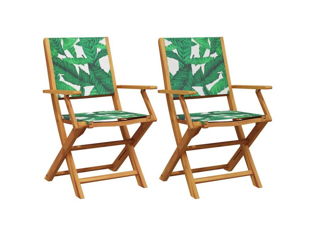 Multidom Záhradné stoličky 2 ks vzor listov akáciový masív látka