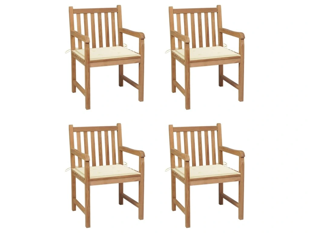 Multidom Záhradné stoličky 4 ks, krémové podložky, tíkový masív