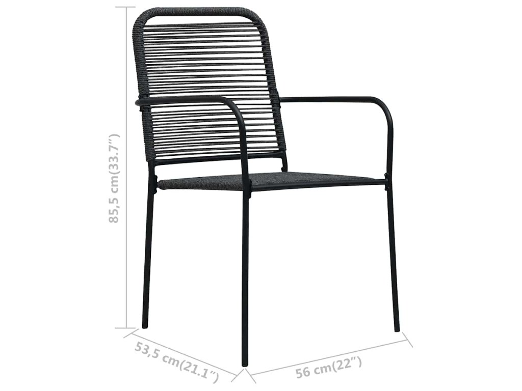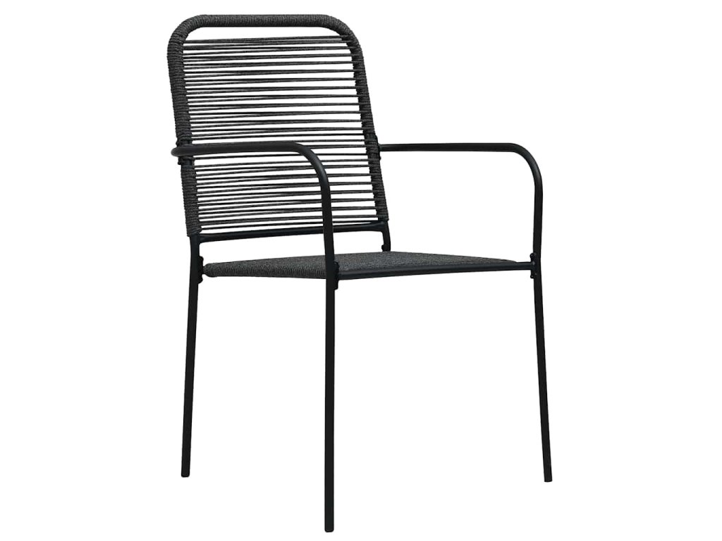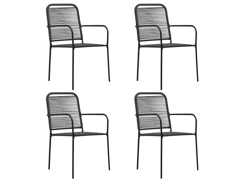 Multidom Záhradné stoličky 4 ks čierne bavlnené šnúry a oceľ