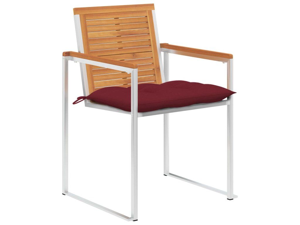 Jedálenské stoličky sú vyrobené z masívneho akáciového dreva a prvotriednej nehrdzavejúcej ocele, vďaka čomu sú veľmi odolné, odolné voči hrdzi, pevné a ľahko sa čistia vlhkou handričkou. Navyše, priložený vankúš je viac než len praktický doplnok; má aj dekoratívnu funkciu. Posaďte sa a užite si večeru pod holým nebom, alebo si len tak oddýchnite a užite počasie s touto klasickou záhradnou stoličkou!