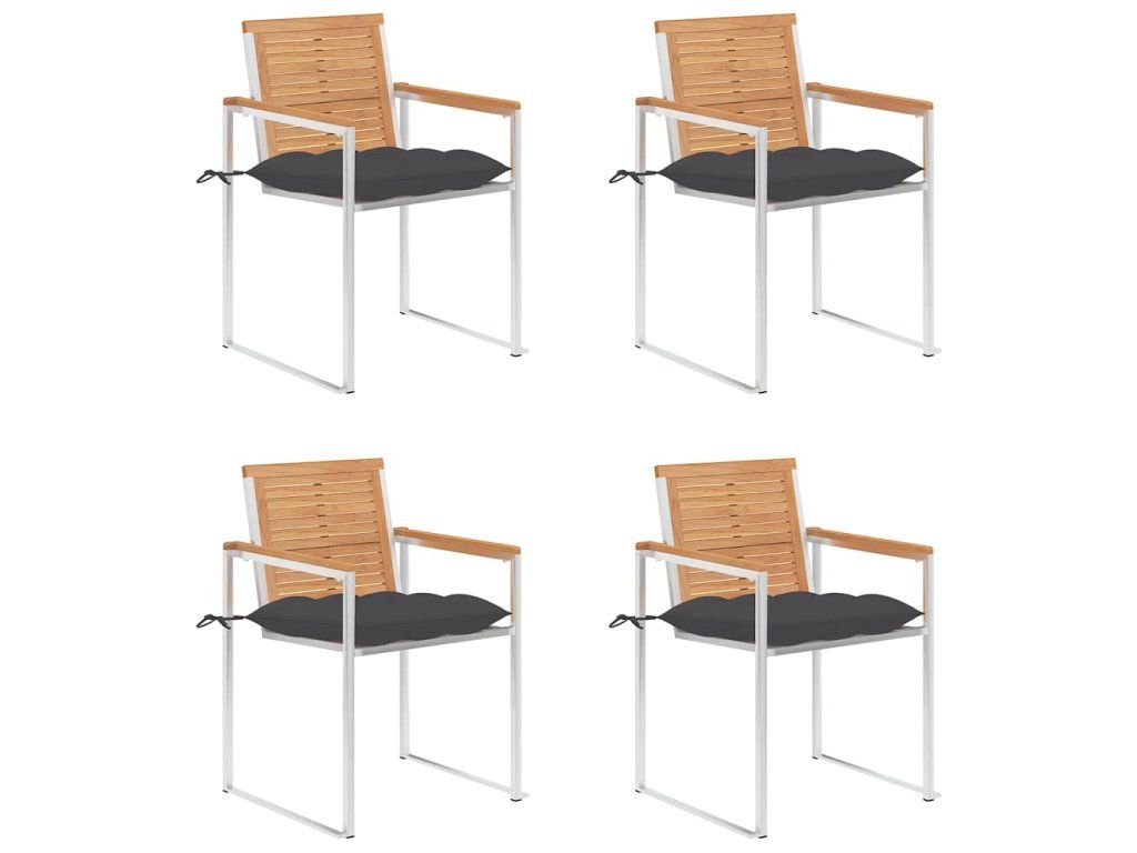 Tíkový nábytok je vyhotovený z mimoriadne trvácneho tvrdého tíkového dreva, ktoré bolo umelo vysušené v sušiarni a jeho povrch bol následne jemne obrúsený, aby získal hladký vzhľad. Tíkové drevo sa vyznačuje výnimočnou pevnosťou a odolnosťou voči poveternostným vplyvom, a tak predstavuje jeden z najvhodnejších materiálov na výrobu záhradného nábytku spomedzi všetkých ostatných druhov dreva. Ak si chcete zaobstarať záhradný nábytok, ktorý vám bude slúžiť dlhé roky, tíkové drevo je pre vás ako stvorené. Vďaka vysokokvalitnému rámu z nehrdzavejúcej ocele sú tiež veľmi trvanlivé, odolné voči hrdzi a robustné. Vankúše sú nielen praktické, ale majú aj dekoratívnu funkciu. Posaďte sa na krásnu vonkajšiu večeru alebo si len oddýchnite a užívajte si počasie s touto klasickou sadou záhradných stoličiek.