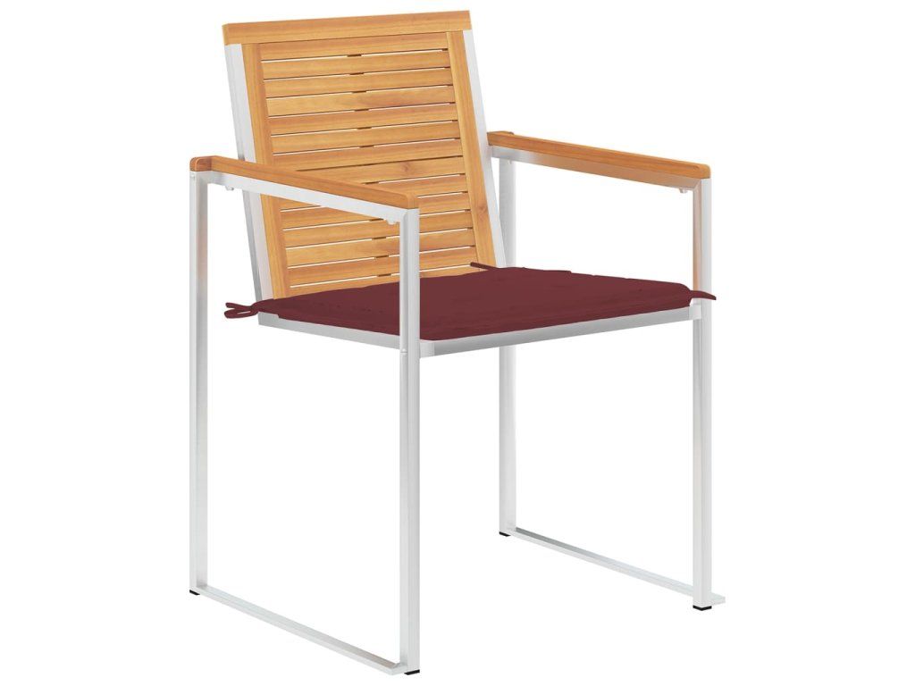Tíkový nábytok je vyhotovený z mimoriadne trvácneho tvrdého tíkového dreva, ktoré bolo umelo vysušené v sušiarni a jeho povrch bol následne jemne obrúsený, aby získal hladký vzhľad. Tíkové drevo sa vyznačuje výnimočnou pevnosťou a odolnosťou voči poveternostným vplyvom, a tak predstavuje jeden z najvhodnejších materiálov na výrobu záhradného nábytku spomedzi všetkých ostatných druhov dreva. Ak si chcete zaobstarať záhradný nábytok, ktorý vám bude slúžiť dlhé roky, tíkové drevo je pre vás ako stvorené. Vďaka vysokokvalitnému rámu z nehrdzavejúcej ocele sú tiež veľmi trvanlivé, odolné voči hrdzi a robustné. Vankúše sú nielen praktické, ale majú aj dekoratívnu funkciu. Posaďte sa na krásnu vonkajšiu večeru alebo si len oddýchnite a užívajte si počasie s touto klasickou sadou záhradných stoličiek.