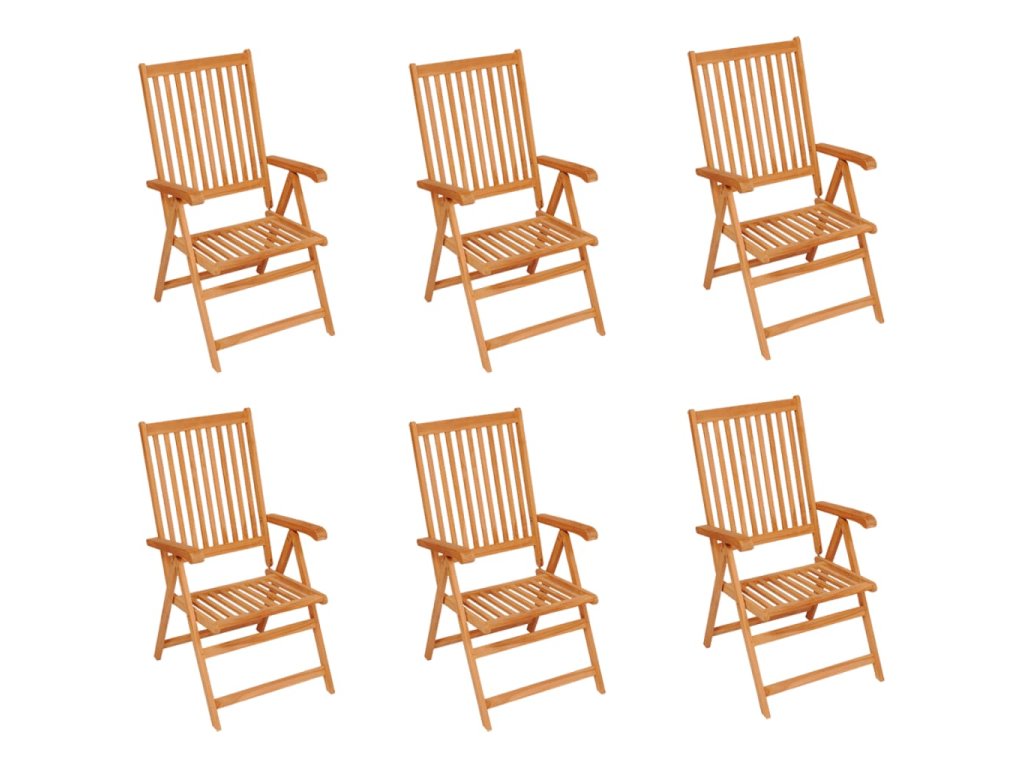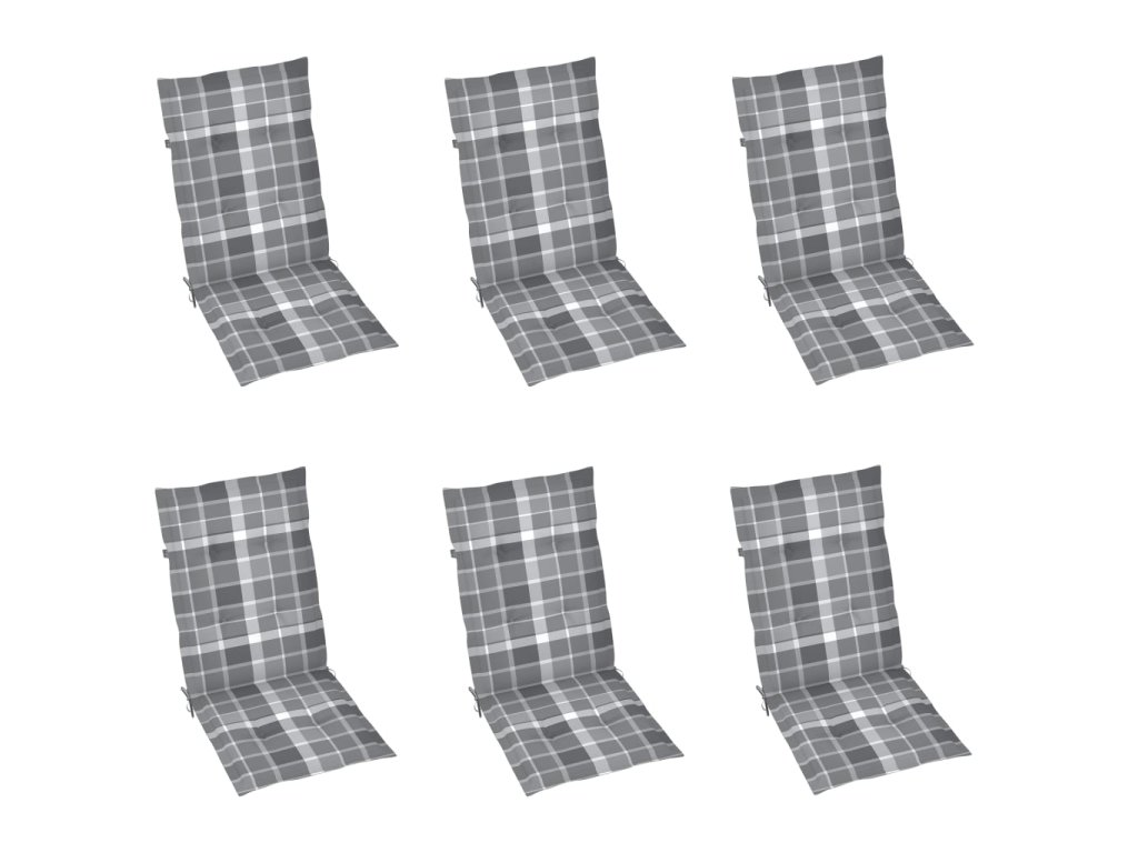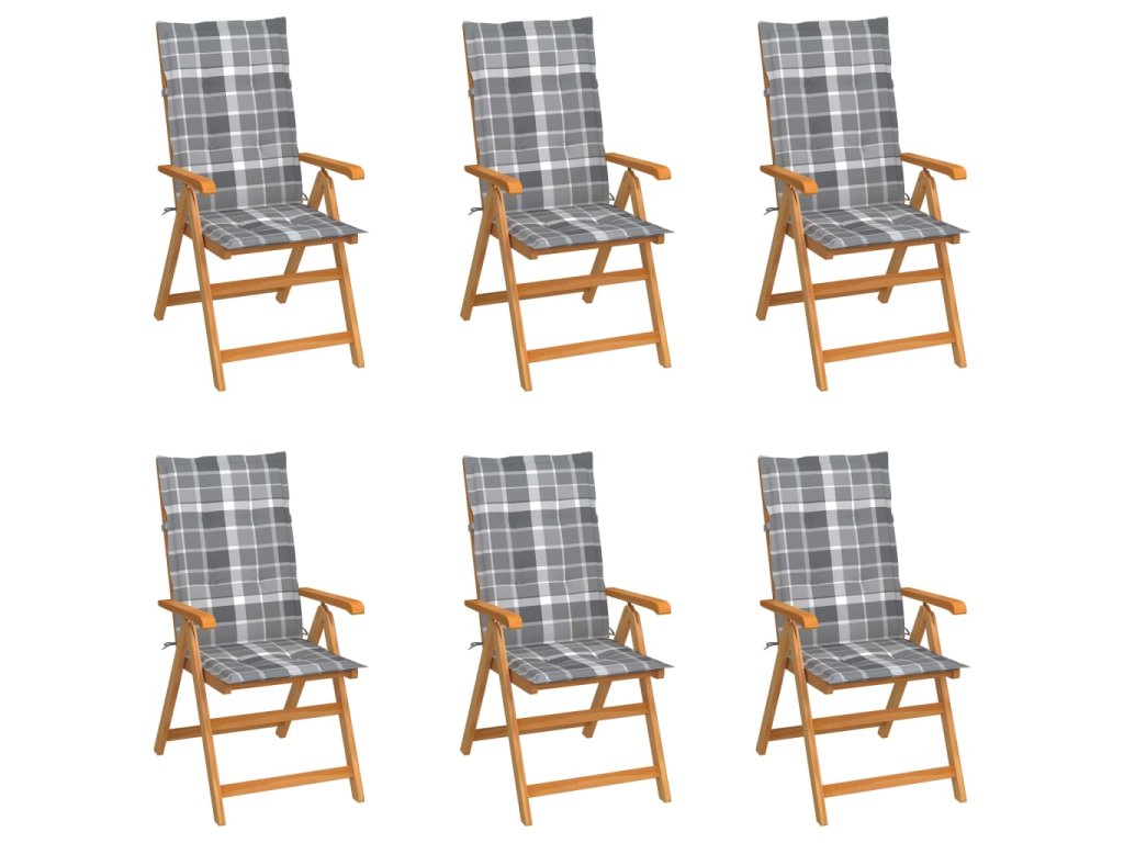 Multidom Záhradné stoličky 6 ks, sivé kockované podložky, tíkový masív