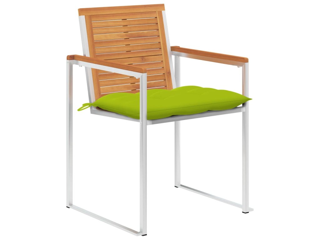 Jedálenské stoličky sú vyrobené z masívneho akáciového dreva a prvotriednej nehrdzavejúcej ocele, vďaka čomu sú veľmi odolné, odolné voči hrdzi, pevné a ľahko sa čistia vlhkou handričkou. Navyše, priložený vankúš je viac než len praktický doplnok; má aj dekoratívnu funkciu. Posaďte sa a užite si večeru pod holým nebom, alebo si len tak oddýchnite a užite počasie s touto klasickou záhradnou stoličkou!
