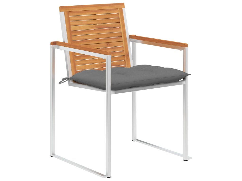 Jedálenské stoličky sú vyrobené z masívneho akáciového dreva a prvotriednej nehrdzavejúcej ocele, vďaka čomu sú veľmi odolné, odolné voči hrdzi, pevné a ľahko sa čistia vlhkou handričkou. Navyše, priložený vankúš je viac než len praktický doplnok; má aj dekoratívnu funkciu. Posaďte sa a užite si večeru pod holým nebom, alebo si len tak oddýchnite a užite počasie s touto klasickou záhradnou stoličkou!
