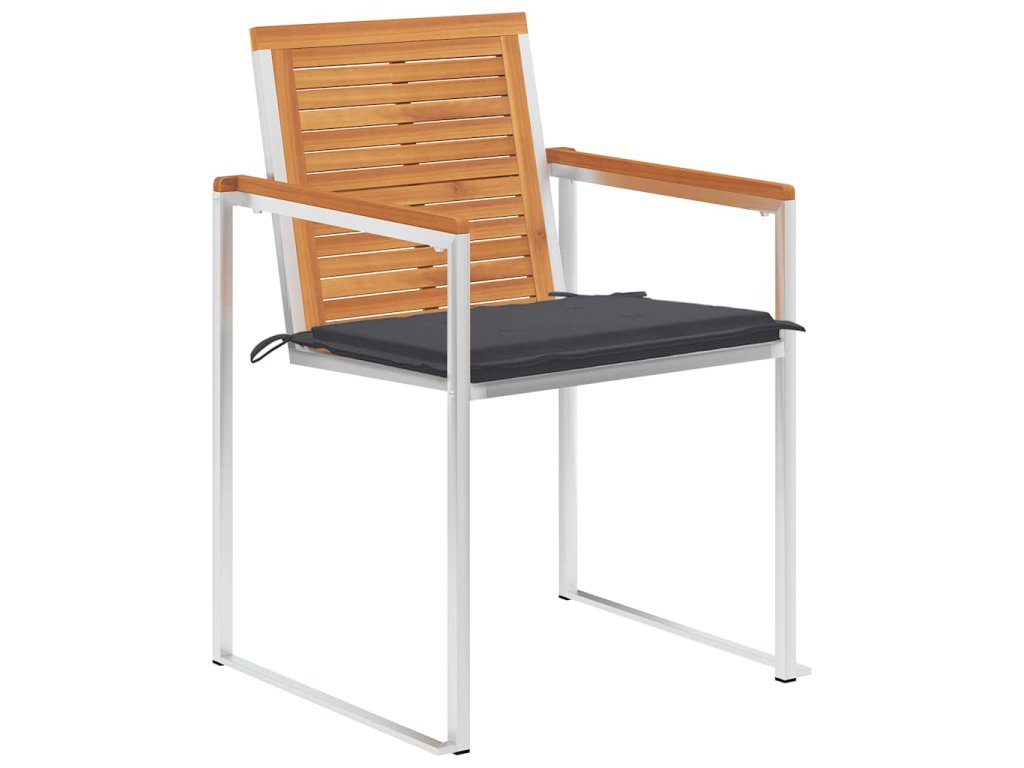Jedálenské stoličky sú vyrobené z masívneho akáciového dreva a prvotriednej nehrdzavejúcej ocele, vďaka čomu sú veľmi odolné, odolné voči hrdzi, pevné a ľahko sa čistia vlhkou handričkou. Navyše, priložený vankúš je viac než len praktický doplnok; má aj dekoratívnu funkciu. Posaďte sa a užite si večeru pod holým nebom, alebo si len tak oddýchnite a užite počasie s touto klasickou záhradnou stoličkou!