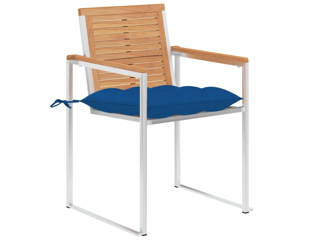 Tíkový nábytok je vyhotovený z mimoriadne trvácneho tvrdého tíkového dreva, ktoré bolo umelo vysušené v sušiarni a jeho povrch bol následne jemne obrúsený, aby získal hladký vzhľad. Tíkové drevo sa vyznačuje výnimočnou pevnosťou a odolnosťou voči poveternostným vplyvom, a tak predstavuje jeden z najvhodnejších materiálov na výrobu záhradného nábytku spomedzi všetkých ostatných druhov dreva. Ak si chcete zaobstarať záhradný nábytok, ktorý vám bude slúžiť dlhé roky, tíkové drevo je pre vás ako stvorené. Vďaka vysokokvalitnému rámu z nehrdzavejúcej ocele sú tiež veľmi trvanlivé, odolné voči hrdzi a robustné. Vankúše sú nielen praktické, ale majú aj dekoratívnu funkciu. Posaďte sa na krásnu vonkajšiu večeru alebo si len oddýchnite a užívajte si počasie s touto klasickou sadou záhradných stoličiek.