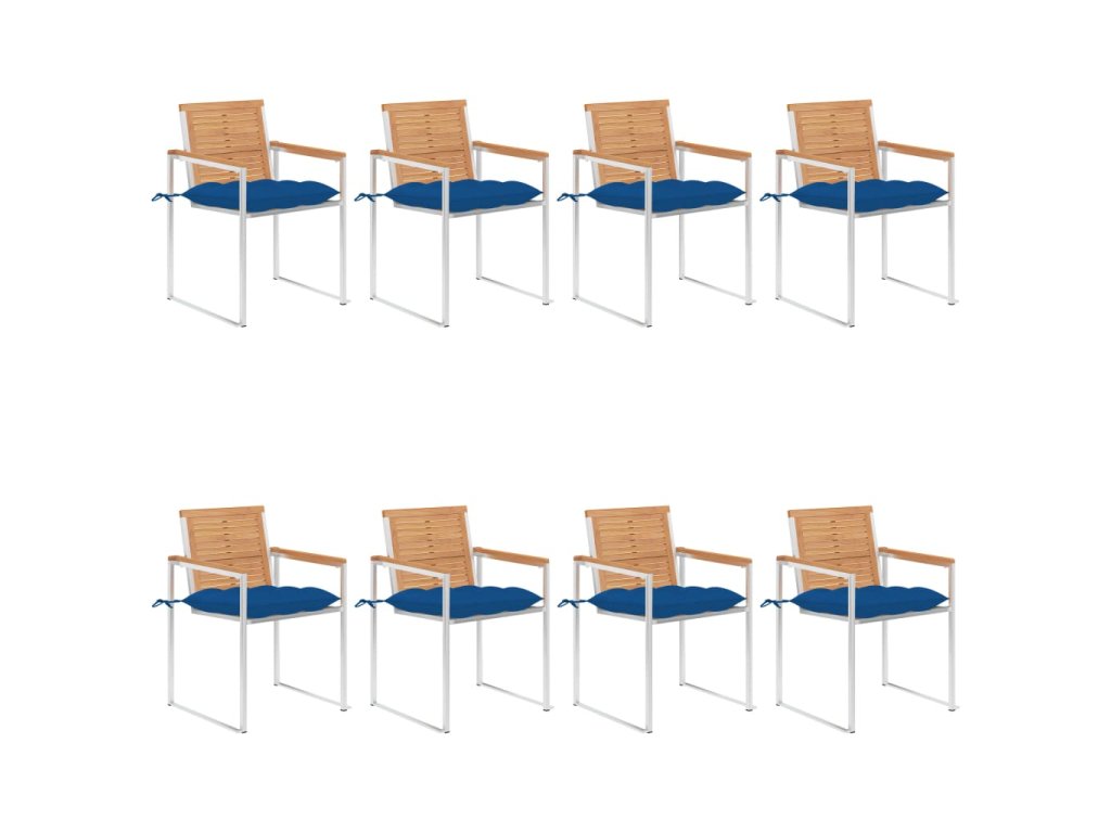Multidom Záhradné stoličky 8 ks s podložkami tíkový masív