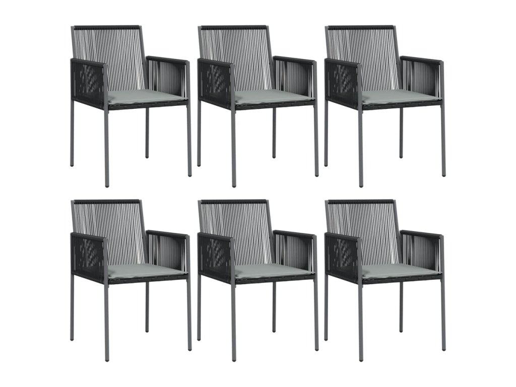Multidom Záhradné stoličky a vankúše 6ks čierne 54x60,5x83,5cm polyratan