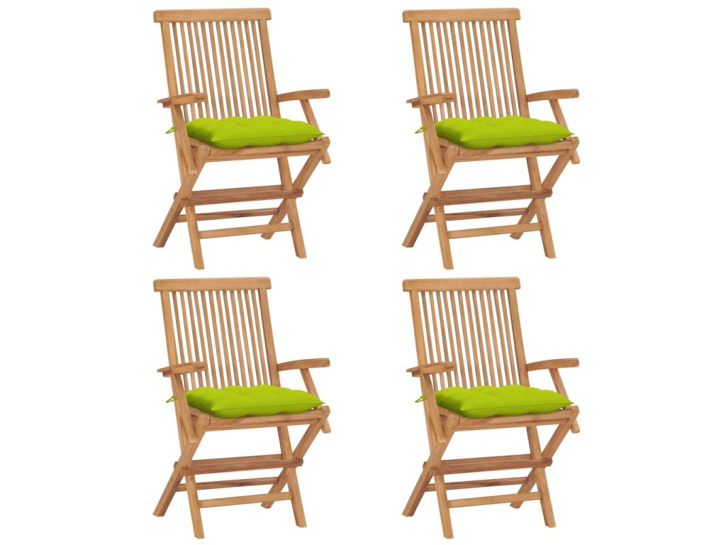 Multidom Záhradné stoličky s jasnozelenými podložkami 4 ks tíkový masív