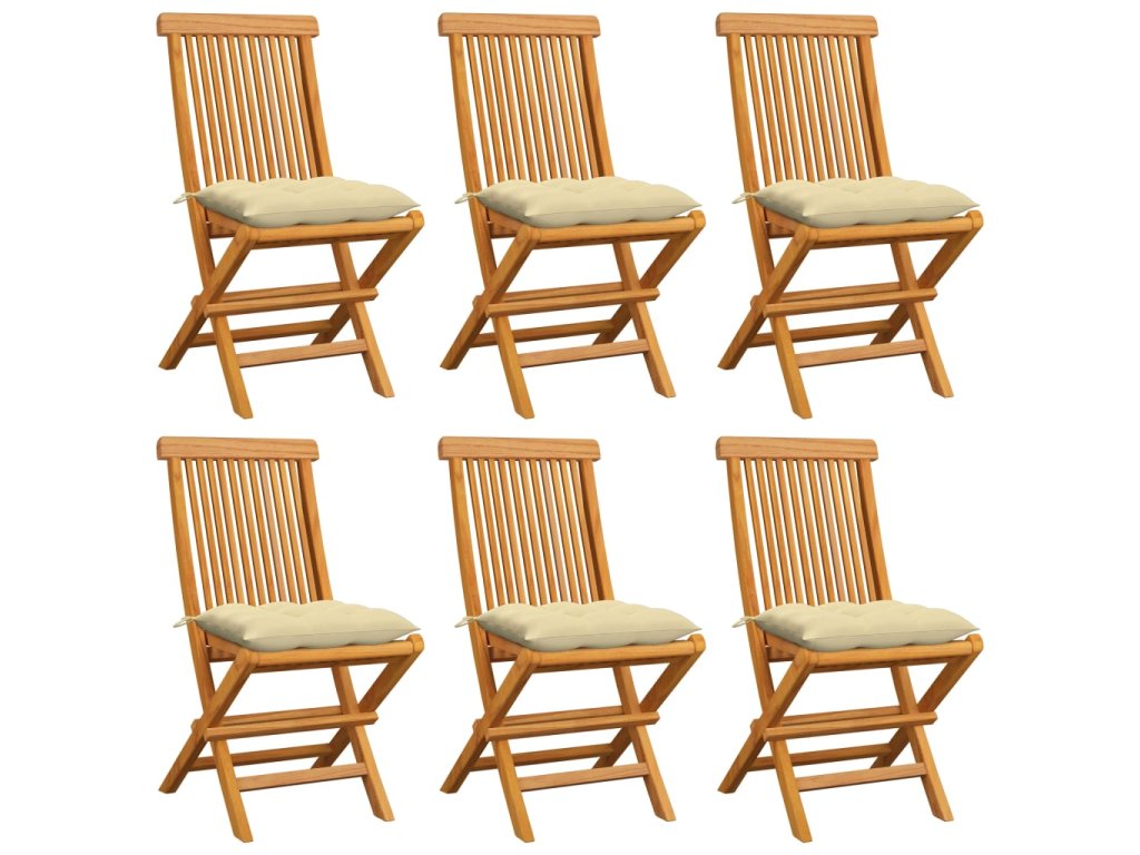Multidom Záhradné stoličky s krémovými podložkami 6 ks tíkový masív