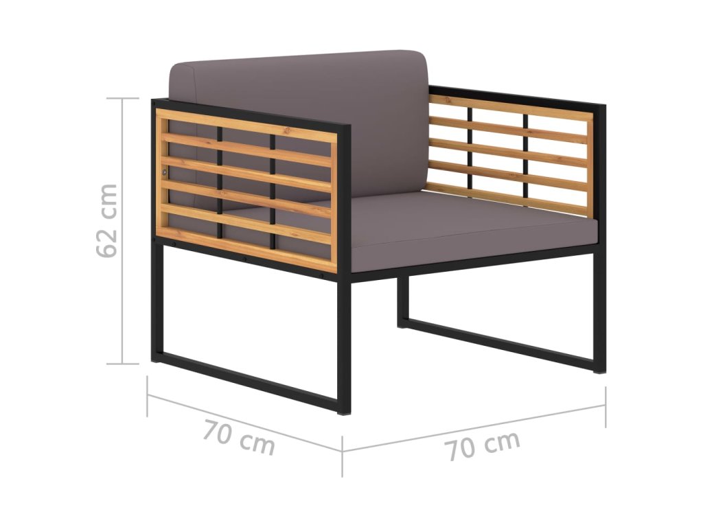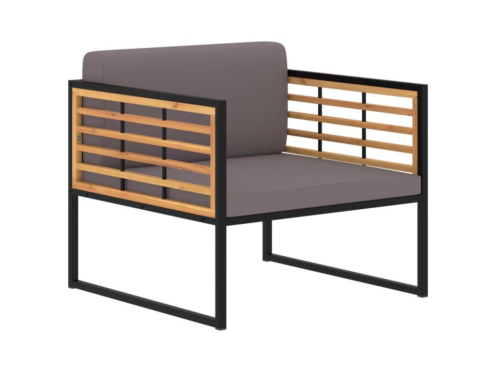 - Materiál: Akáciový masív s olejovým náterom, látka (100% polyester), oceľ s práškovou povrchovou úpravou