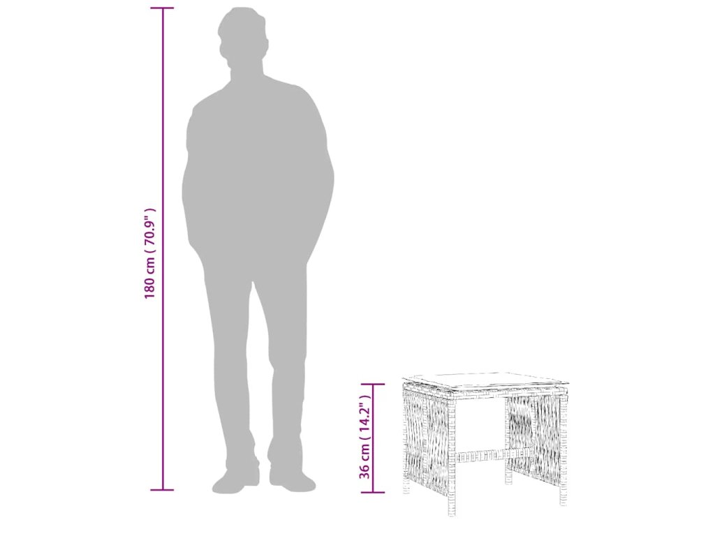 - Materiál: PE ratan, oceľ s práškovou povrchovou úpravou