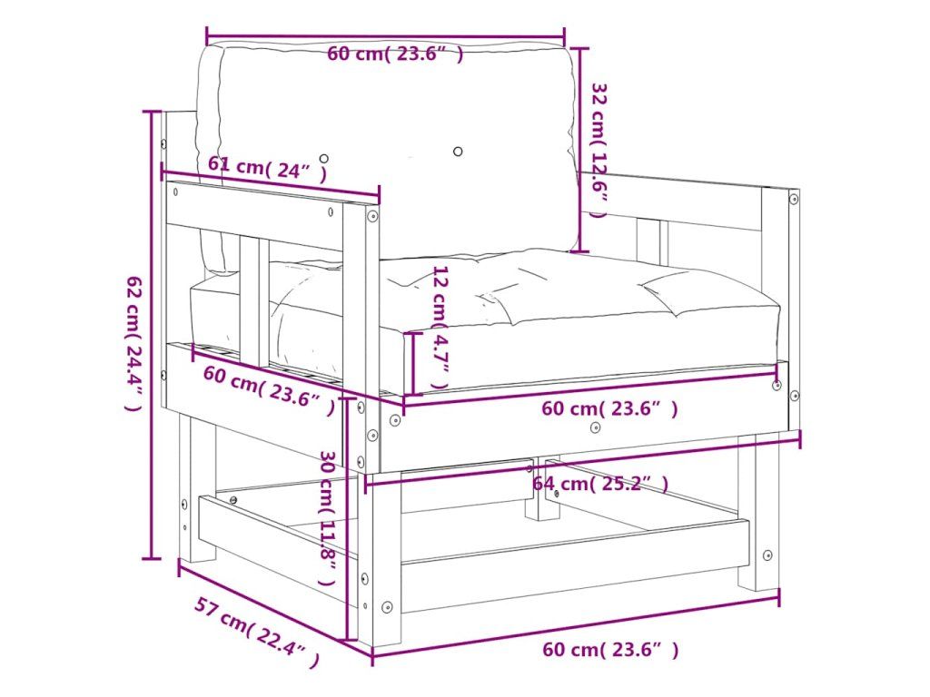 - Rozmery podložky na sedadlo: 60 x 60 x 12 cm (D x Š x V)
