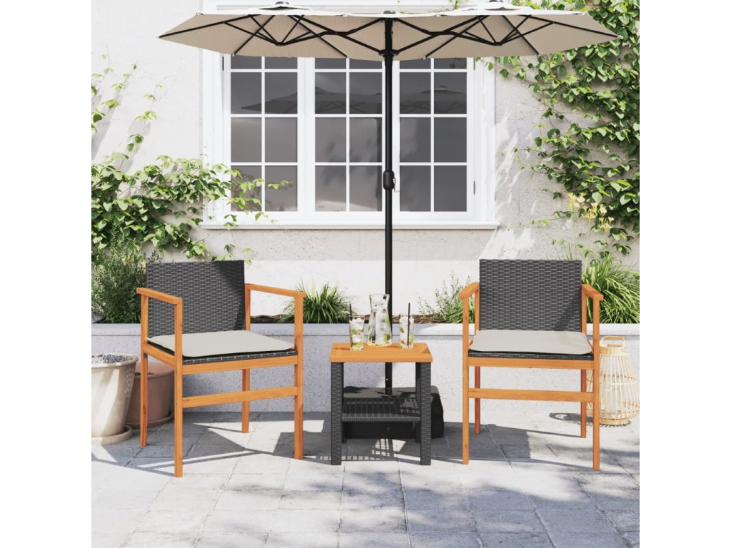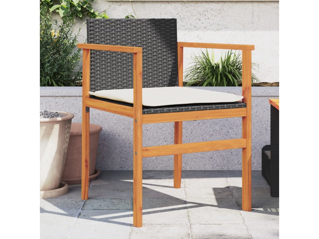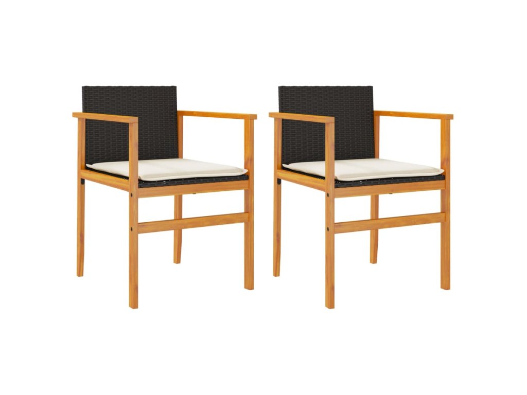 Multidom Záhradné stoličky s vankúšmi 2 ks čierne polyratan a masív