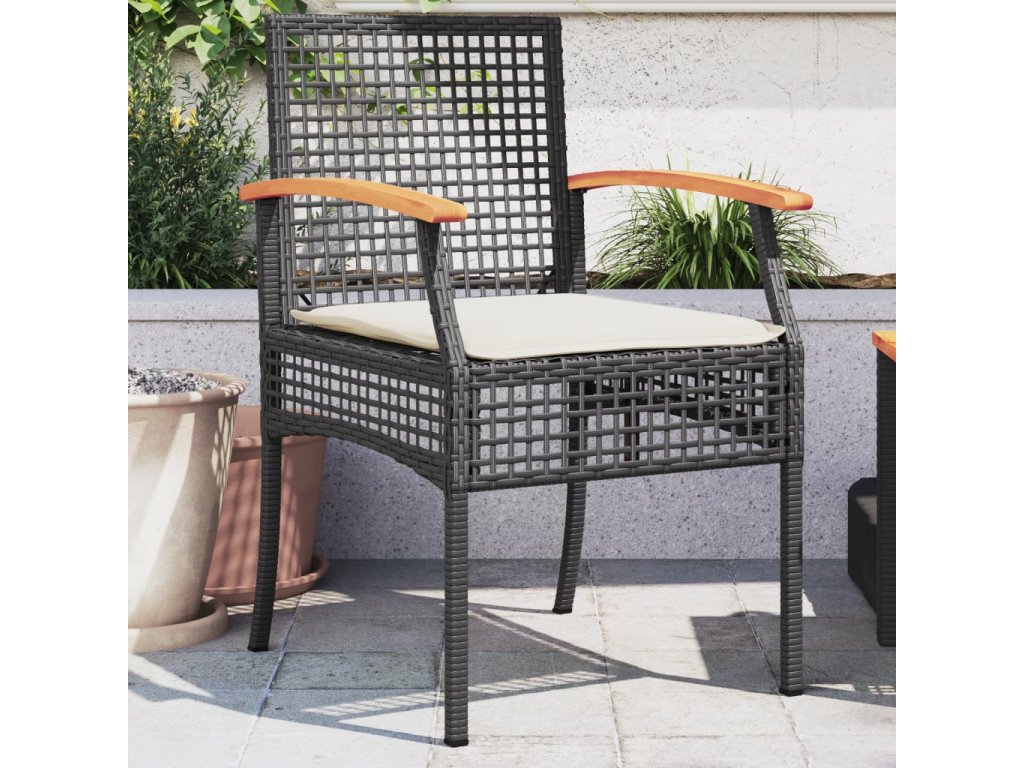 Multidom Záhradné stoličky s vankúšmi 2 ks čierne polyratan akácia