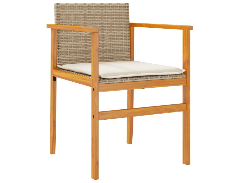 Multidom Záhradné stoličky s vankúšmi 2ks béžové polyratan masívne drevo