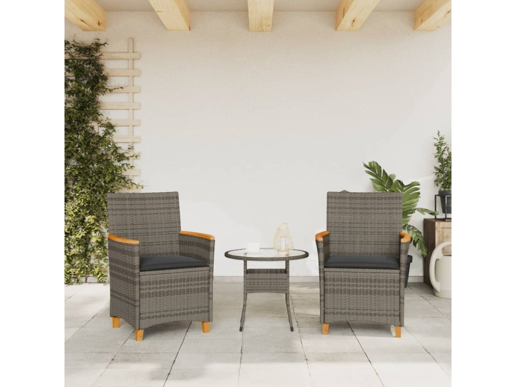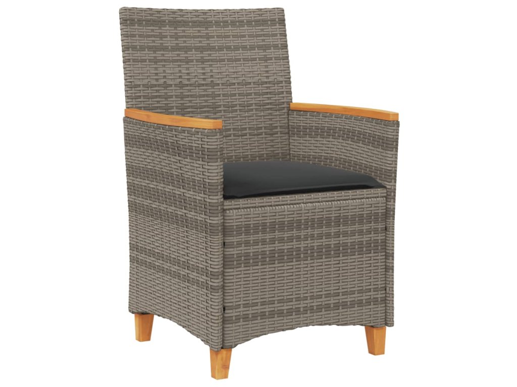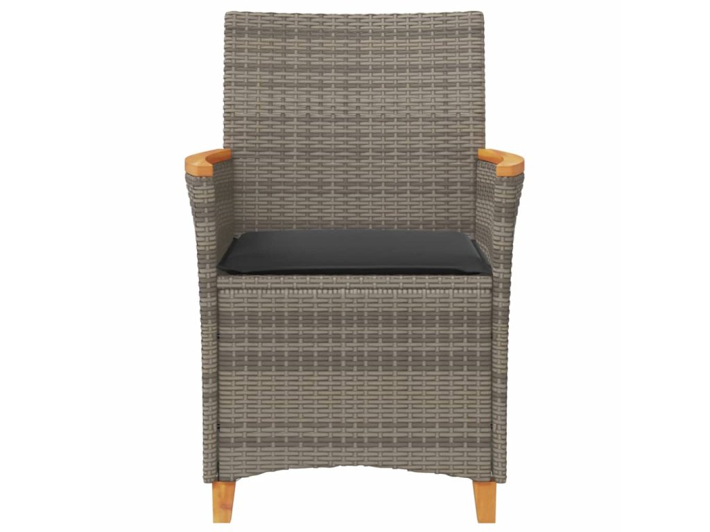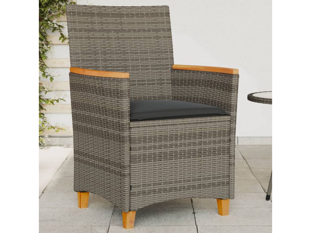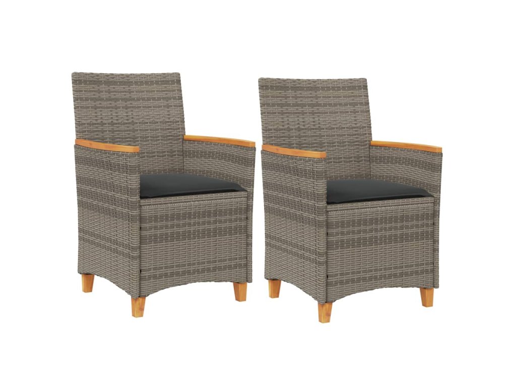 Multidom Záhradné stoličky s vankúšmi 2ks sivé polyratan a masívne drevo